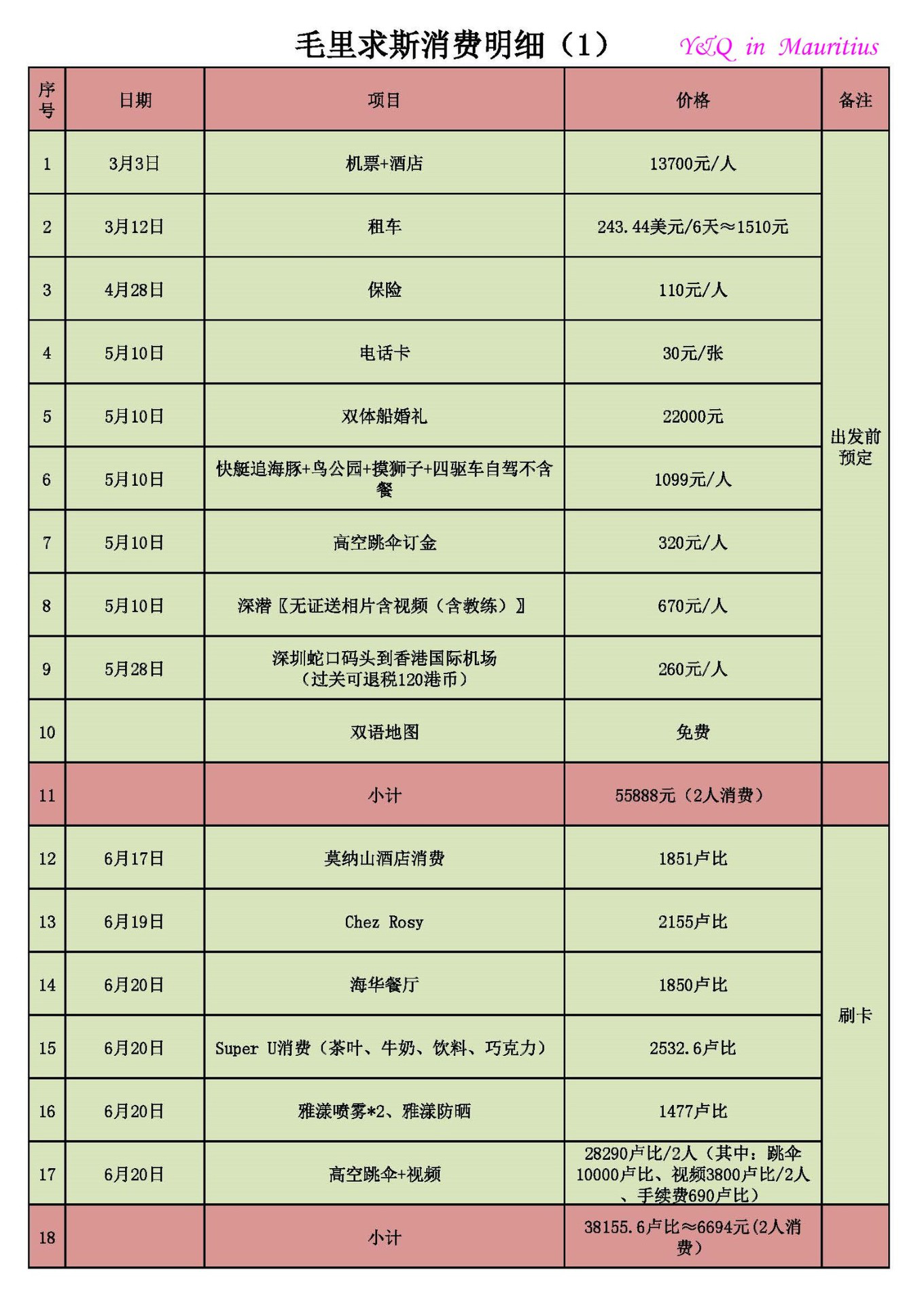 旅游前都想了解每一项需要支出多少,心里好有个底。毕竟出国,很多跟国内是不一样的,也担心会被吃一劫。我整理了一下,我这次出行所有的开销
