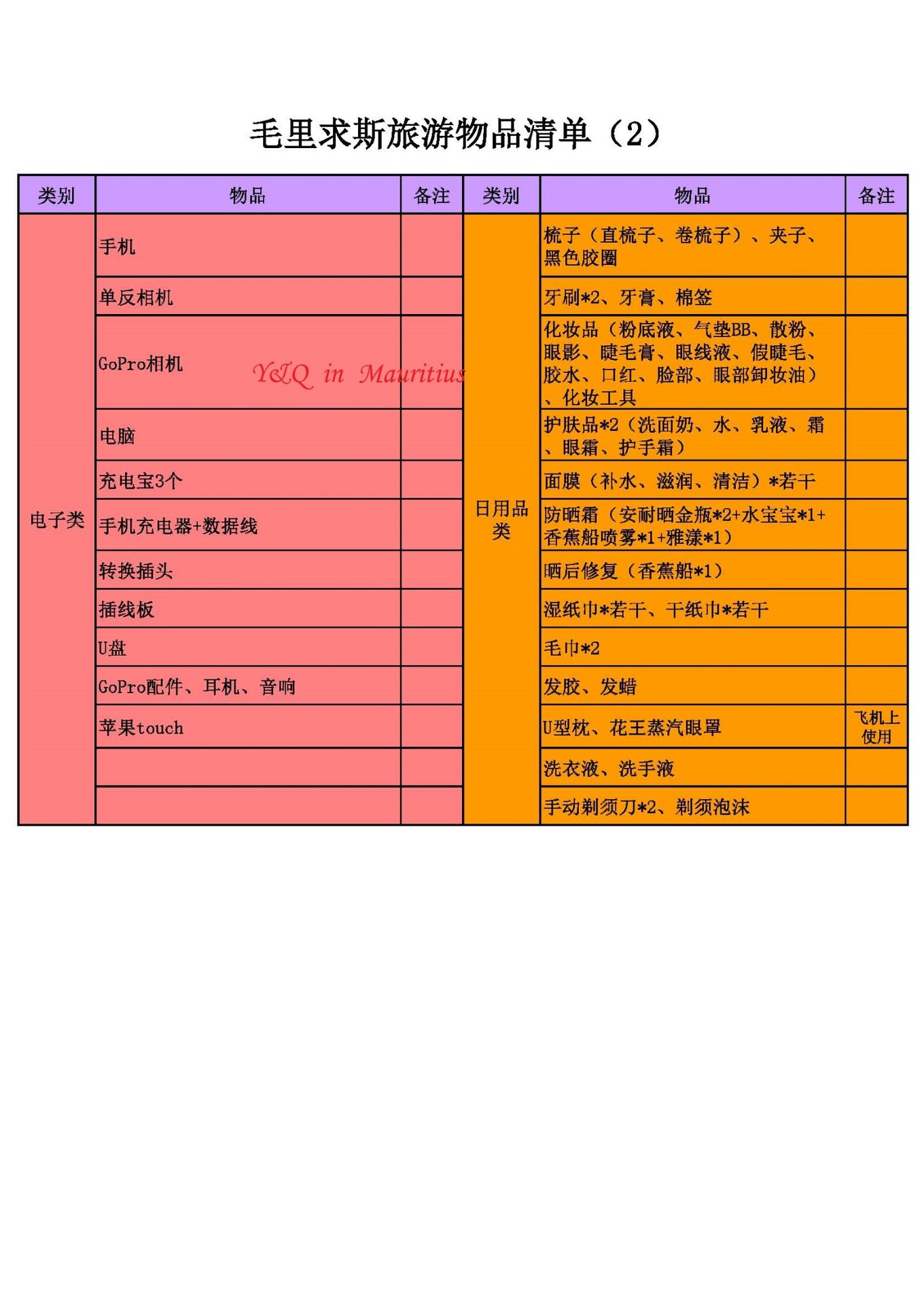 不准备不知道,列一个清单出来才知道,要带这么多东西,太夸张了。。。。。。